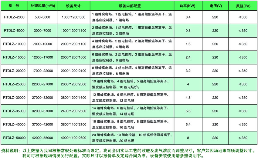 RTDLZ-型系列等离子有机废气净化器采用了独特的吸附-分解-碳化最新工艺技术设计,采用标准模块设计等优点,是一种干法处理有机废气的净化设备。它改变了使用活性碳材料的工艺技术,无需再生处理原料,无需专人负责,不产生二次污染,更换及维护保养方便(可在设备正常运行情况下更换维护操作)。RTDLZ-型系列等离子有机废气净化器产品,无需增大抽风设备风阻小,安装简便。可根据客户现场环境要求分组制造,方便运输及安装。设备结构紧凑,投资低,操作方便,产品采用标准型材料制造,或采用全不锈钢材料制造,处理风量有3000~60000m3/h,是目前处理工业有机废气污染的先进设备。