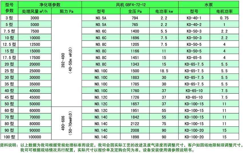 5、塔体可根据实际情况采用FRP/PP/PVC等材料制作;