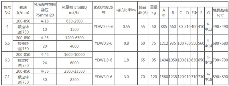 BDW-87-4型离心屋顶风机性能安装外形尺寸表