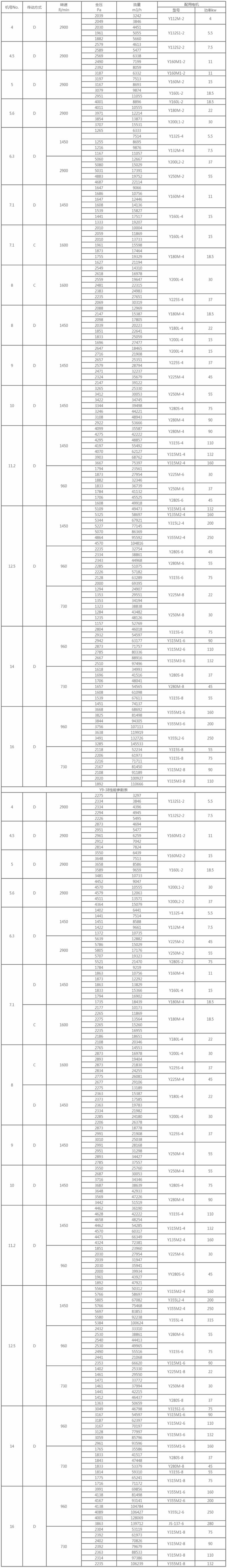 当机号相同时,二个系列风机的连接及安装尺寸相同。